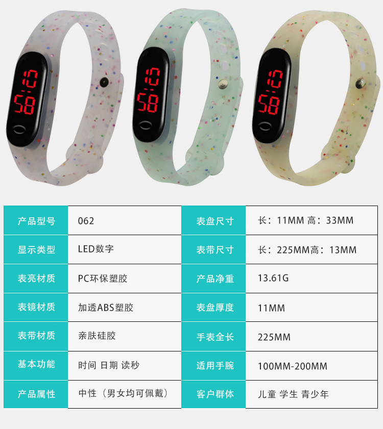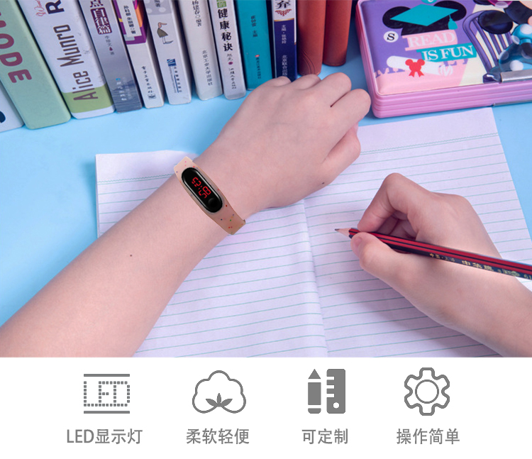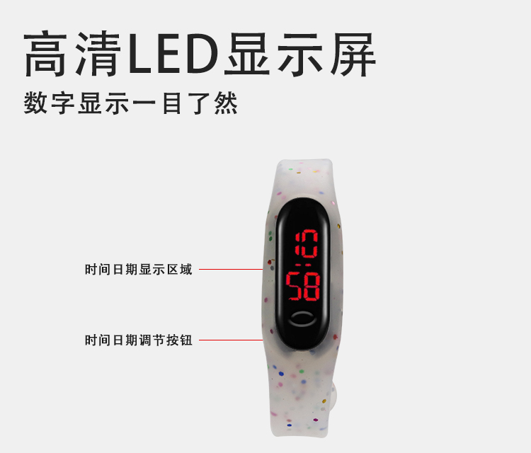 2、硅膠表帶耐磨損,耐高溫,不變形,可以長期佩帶。外表光滑,手感強(qiáng),是真正的綠色環(huán)保飾品;