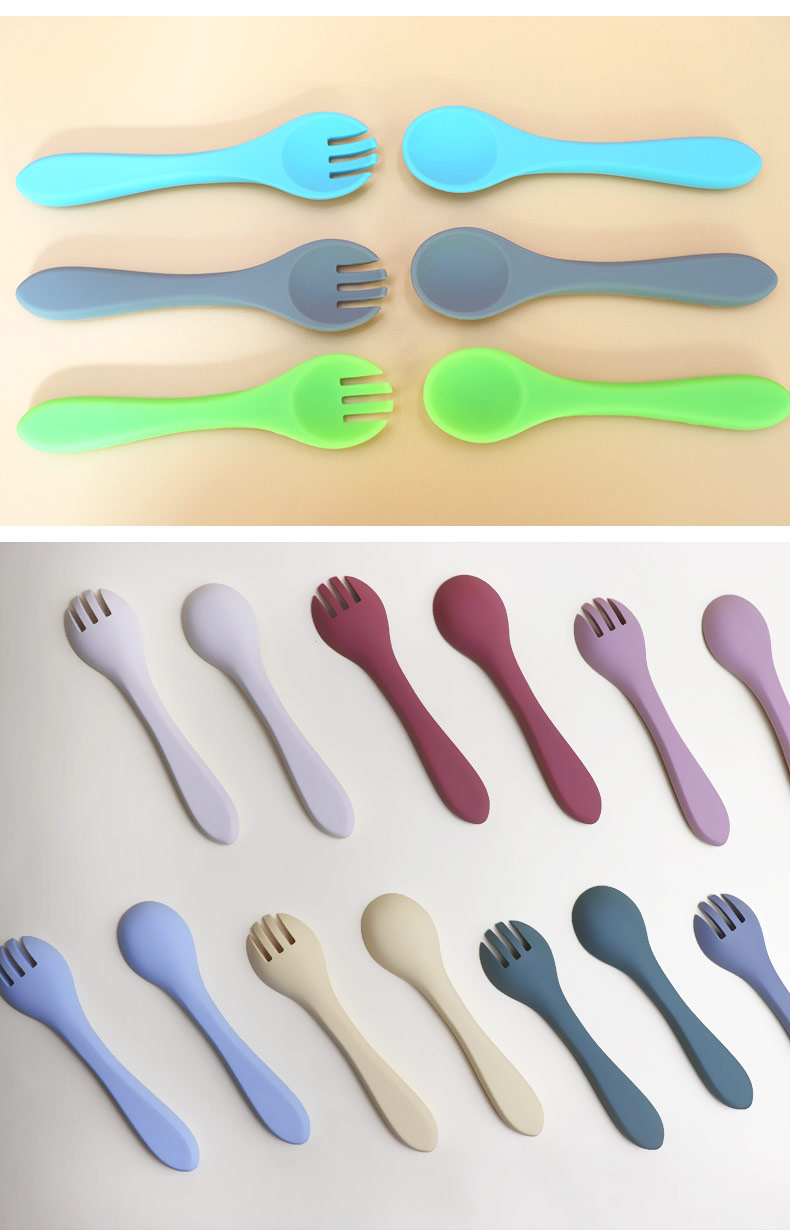 硅膠叉勺嬰兒訓(xùn)練叉勺食品級(jí)硅膠叉勺