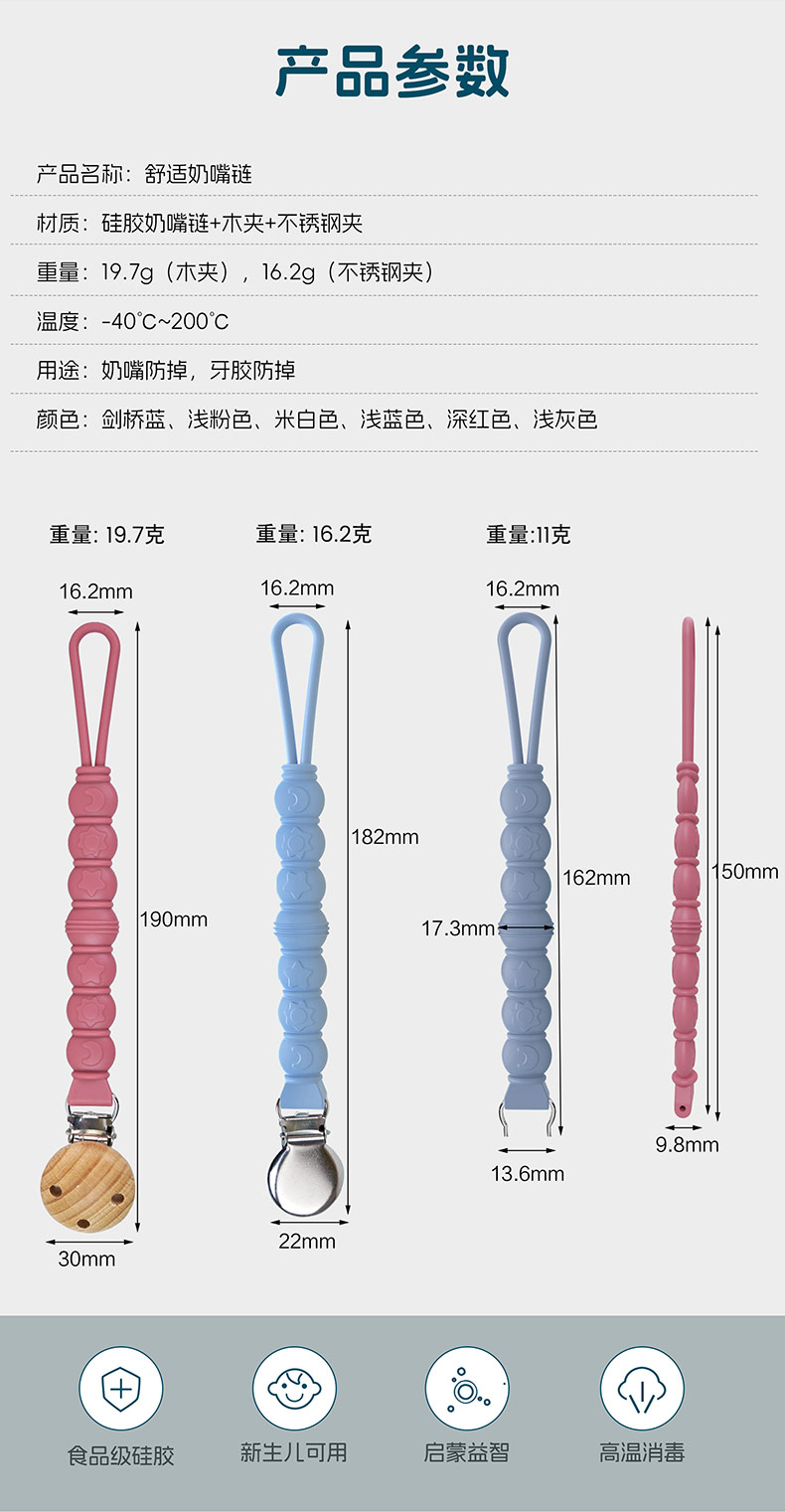 產品名稱:硅膠奶嘴鏈