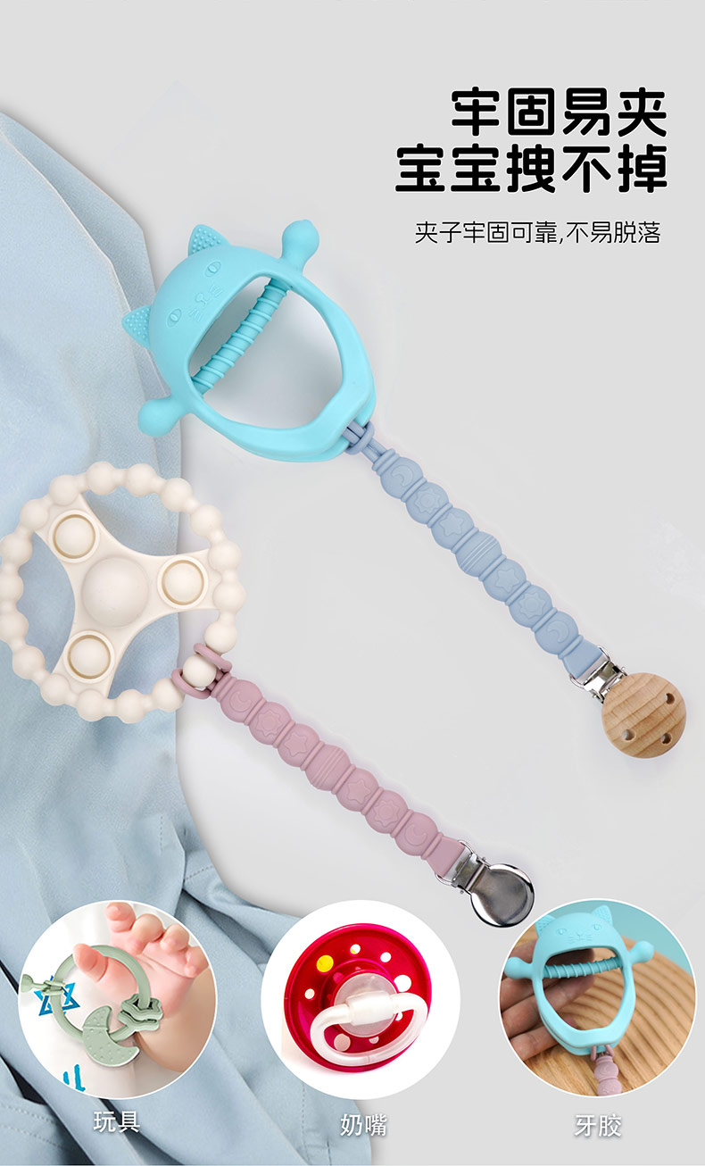 用途:奶嘴防掉,牙膠防掉