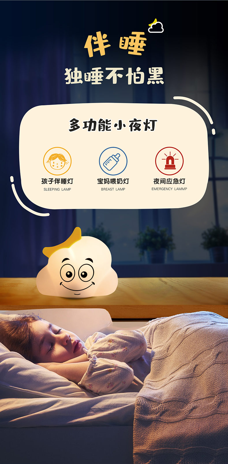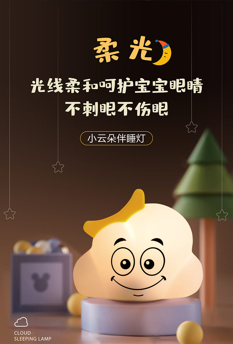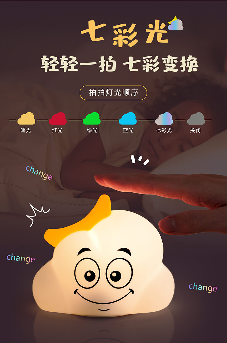 云朵硅膠小夜燈 兒童玩具臥室氛圍燈 網(wǎng)紅生日禮物床頭伴睡拍拍燈