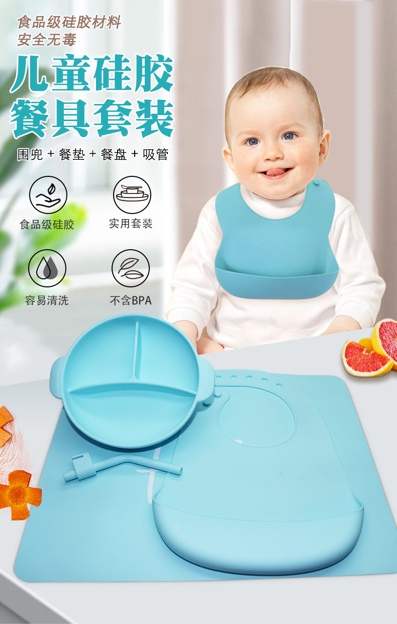 套裝組合:圍兜+餐墊+餐盤+吸管